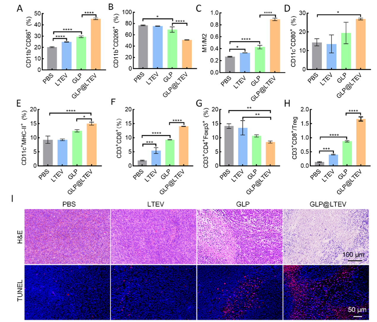图4 灵芝多糖修饰肿瘤细胞外囊泡在结直肠癌皮下肿瘤模型中的抗肿瘤免疫应答